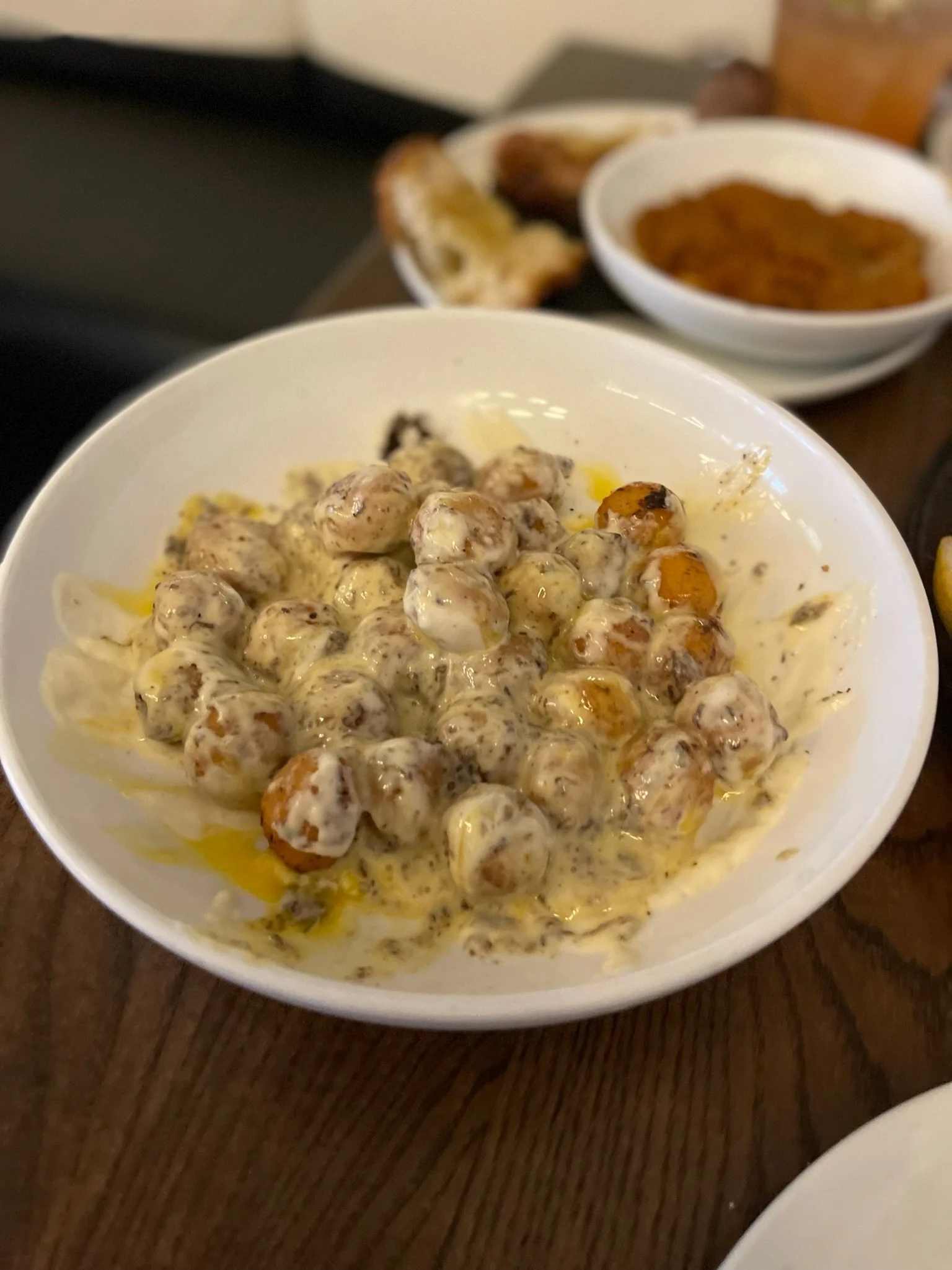Luca Osteria in Coral Gables is a where I had this delicious appetizer that is a cross of a Carbonara and Potato Croquettes. Tiny creamy Fried Potato Fritters covered with a luxurious Truffle Parmesan Cream sauce and topped with a Raw Egg Yolk. The dish is mixed tableside by the server to create an unctuous umami salty flavor that hits just right, pair with a glass of Rose or an Aperol spritz and dine al fresco for a flavorful and chill experience.